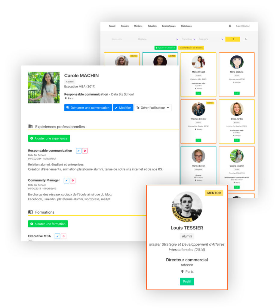 Votre réseau d’anciens est votre plus grande richesse. Offrez à vos membres l’opportunité de se faire accompagner par un mentor.